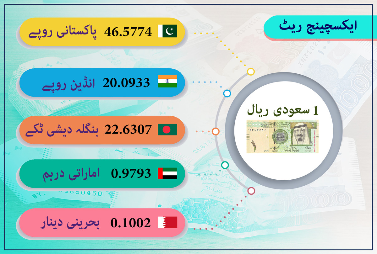 سعودی عرب کے مختلف ٹرانزیکشن مراکز کے مطابق اتوار کو سعودی ریال کا ریٹ کیا ہے؟