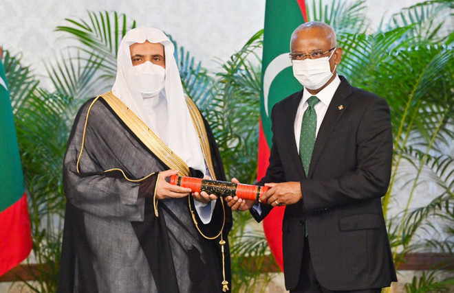 مالدیپ کے صدر ابراہیم صالح نے رابطہ عالم اسلامی کے سیکریٹری جنرل ڈاکٹر محمد بن عبدالکریم العیسی کو ان کی اسلامی خدمات کے اعتراف میں جمہوریہ مالدیپ کا اعلی ترین ایوارڈ دیا ہے۔