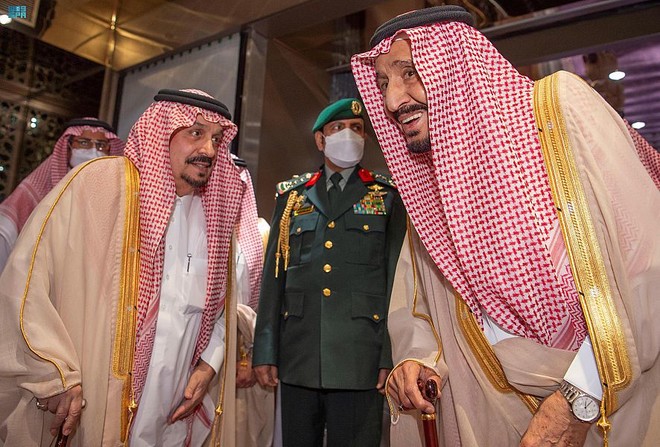 سعودی خبررساں ایجنسی ’ایس پی اے‘ کے مطابق خادم حرمین شریفین شاہ سلمان بن عبدالعزیز آل سعود کے ہمراہ شہزادہ خالد بن فہد بن خالد ، شہزادہ منصور بن سعود بن عبدالعزیز ، شہزادہ خالد بن سعد بن فہد اور شہزادہ سطام بن سعود بن عبدالعزیز بھی تھے۔