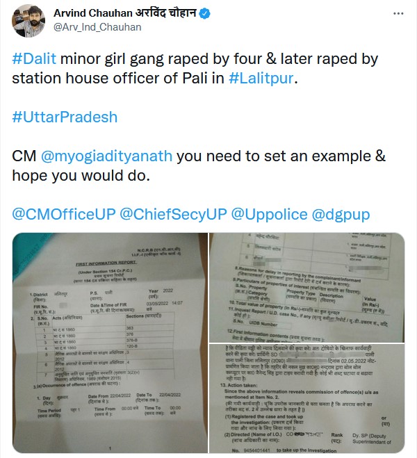 انڈیا میں مبینہ اجتماعی زیادتی کی شکایت لے کر پولیس سٹیشن پہنچنے والی کم عمر دلت لڑکی کو ایس ایچ او نے زیادتی کا نشانہ بنا ڈالا۔