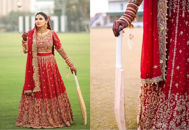 پہاڑوں، ہوٹلوں، ڈھابوں اور پرانی عمارتوں پر ہوتے فوٹو شوٹ تو آپ نے دیکھ رکھ ہوں گے مگر کیا آپ نے کبھی کسی دلہن کو بلے کے ساتھ فوٹو شوٹ کرواتے دیکھا ہے؟