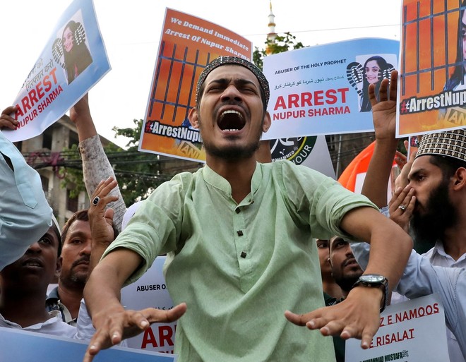 بی جے پی رہنماؤں کے گستاخانہ بیانات کے بعد انڈیا کے مختلف شہروں میں احتجاج کا سلسلہ شروع ہوا۔ (فائل فوٹو:روئٹرز)