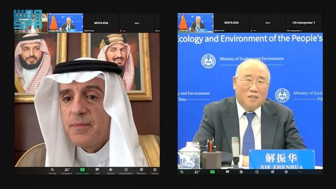 سعودی وزیر مملکت برائے امور خارجہ اور ایلچی برائے امورماحولیات عادل الجبیر نے بدھ کو وڈیو لنک کے ذریعے چینی ایلچی برائے امور ماحولیات سے رابطہ کیا ہے۔