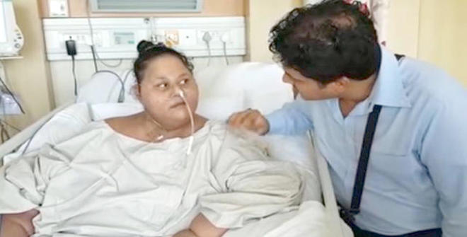 ممبئی۔۔۔۔دنیا کی سب سے وزنی خاتون ایمان احمد کو مزید علاج کیلئے ابوظبی منتقل نہیں کیا جاسکا۔ ممبئی میں سیفی اسپتال کے حکام نے بتایا کہ ایمان کا علاج کرنیوالے ڈاکٹر مکمل معائنے کے بعد روانگی کے وقت کا تعین کرینگے۔ایک یا 2دن لگ سکتے ہیں،ایئر ایمبولینس کی ٹیم نے گزشتہ روز سیفی اسپتال میں ایمان سے ملاقات کی تاہم یہ نہیں بتایا کہ اسے کب منتقل کیا جائے گا۔سیفی اسپتال کا عملہ اپنی اہم مریضہ کی منتقلی کیلئے تیار ہے5فولڈروں میں 10ہزار میڈیکل ریکارڈز بھی اس کے ہمراہ جائیگا۔ ایمان کی منتقلی کیلئے اٹلی سے خصوصی طور پر ہائیڈرولک اسٹریچر منگوایاگیاہے۔