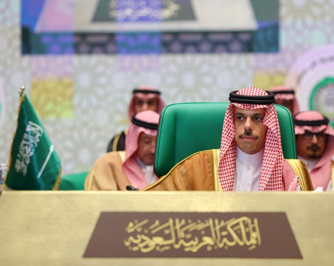 شہزادہ فیصل بن فرحان نے عرب سربراہ کانفرنس میں سعودی موقف تفصیل سے پیش کیا (فوٹو: ایس پی اے)