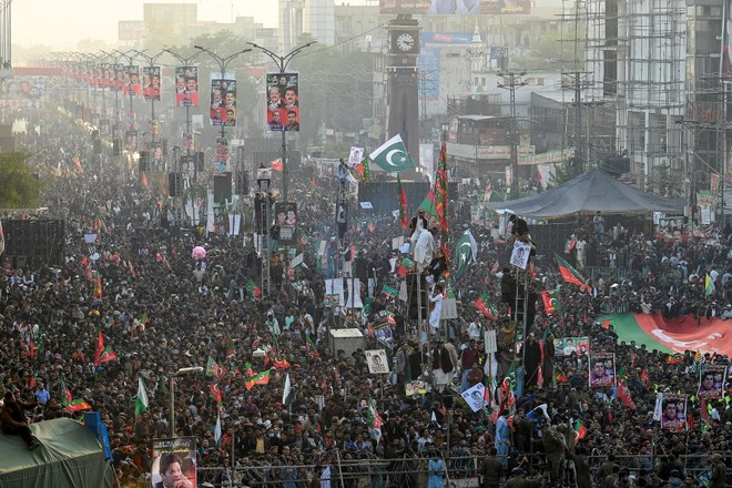 جلسے سے خطاب میں عمران خان نے اسمبلیاں چھوڑنے کا اعلان کیا تھا۔ فوٹو: اے ایف پی