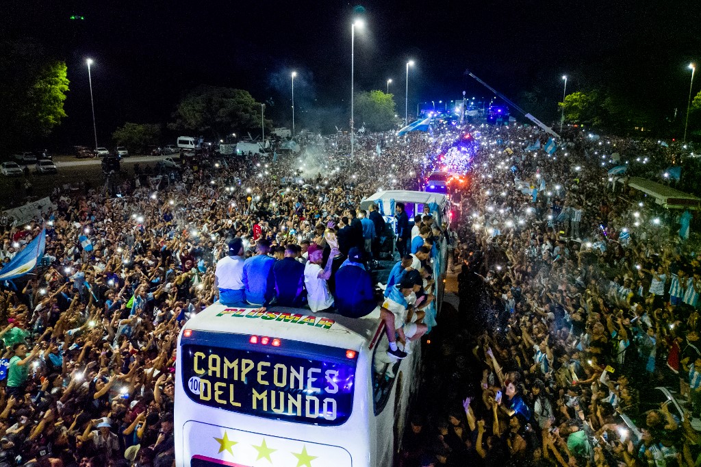 دارالحکومت بیونس آئریز میں ہزاروں شائقین آدھی رات سی ہی قطار میں کھڑے ہو کر فٹبال کی تاریخ کا ایک عظیم الشان ایونٹ (ورلڈ کپ) جیتنے والی ارجنٹائن کی ٹیم کی ایک جھلک دیکھنے کے لیے موجود تھے۔