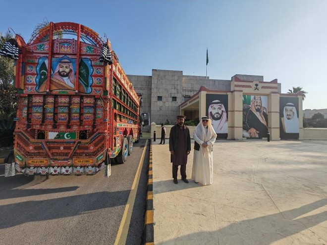 پاکستان میں سعودی عرب کے سفیر نواف سعيد المالكی نے ولی عہد شہزادہ محمد بن سلمان کی تصویر اپنے ٹرک پر آویزاں کرنے والے پاکستانی ٹرک ڈرائیور سے ملاقات کی ہے۔