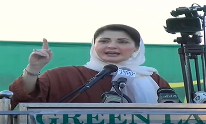 مریم نواز نے کہا کہ ’ٹینکوں کے آگے لیٹنے کا دعویٰ کرنے والے بلک بلک کر رو رہے ہیں۔‘ (فوٹو: سکرین گریب)