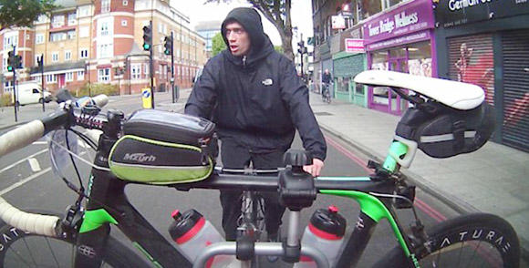 لندن ....وسطی لندن میں ایک چور گاڑی کے پیچھے لگائی گئی ریسنگ بائیسکل کو چلتی گاڑی میں لوگوں کے سامنے چرانے کی کوش کرتا رہا لیکن ناکام رہا۔ کار کے ڈیش بورڈ پر لگے کیمرے نے اسکی ایک منٹ کی وڈیو بنالی جسے بعد میں سوشل میڈیا پر ڈالدیا گیا ہے۔ وڈیو میں دکھایا گیا ہے کہ ایک شخص ہڈ لگائے ہوئے کار کے پیچھے باندھی گئی ریسنگ سائیکل کھولنے کی مسلسل کوشش کررہا ہے۔اس نے یہ کوشش اس وقت کی جب کار سگنل کھلنے کا انتظار کررہی تھی لیکن اس وقت تک یہ چور کامیاب نہیں ہوسکا تھا۔ جیسے ہی سگنل گرین ہوا کارتیزی سے نکل گئی اور چور ہاتھ ملتا رہ گیا۔
