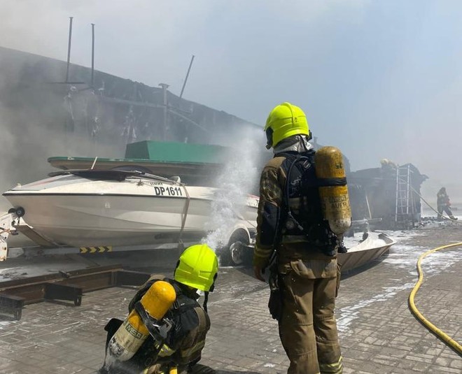 متحدہ عرب امارات میں دبئی سول ڈیفینس نے بر دبئی کی بندرگارہ پر ایک کشتی میں لگنے والی آگ پر قابو پالیا۔