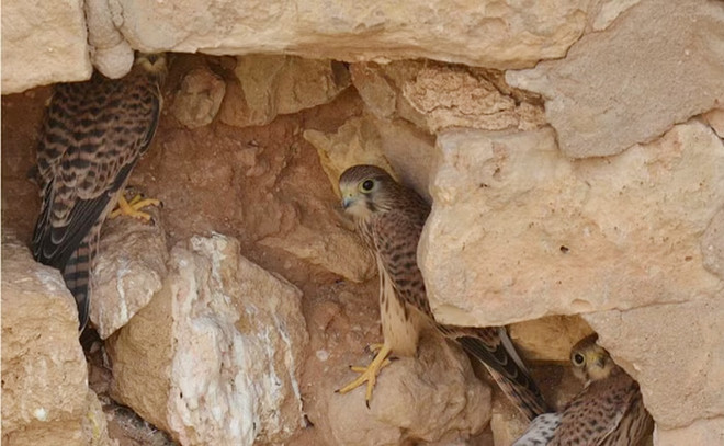 تصویر میں دیکھا جا سکتا ہے کہ 41 سینٹی گریڈ درجہ حرارت میں 3 پرندے گہرے کنویں سے 32 میٹر کے فاصلے پر دھوپ سے بچنے کے لیے پناہ لیے ہوئے ہیں۔