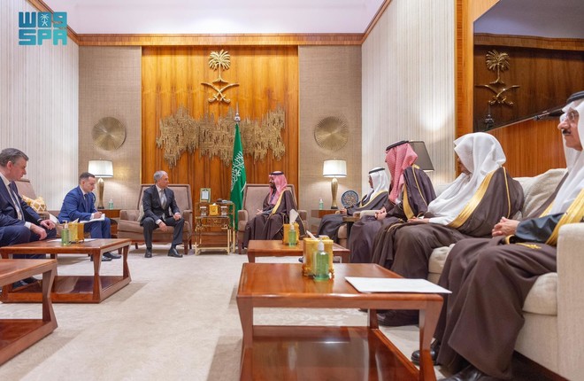 ولی عہد شہزادہ محمد بن سلمان بن عبدالعزیز سے ریاض میں روسی فیڈریشن کی وفاقی اسمبلی ڈوما کے چیئرمین ویاچسلاو وولڈن اور انکے ہمراہ وفد نے ملاقات کی۔