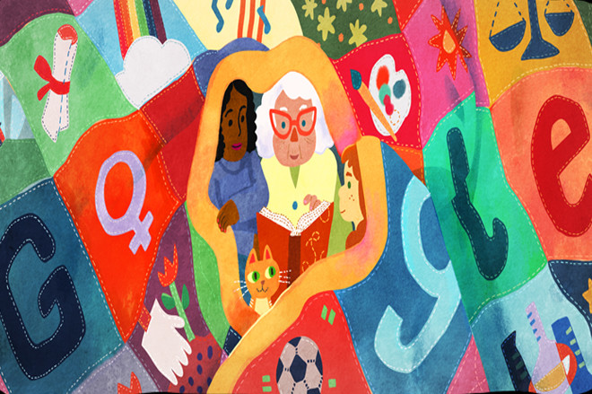 گوگل کی جانب سے آٹھ مارچ کی مناسبت سے جاری کردہ ڈوڈل میں ایک لحاف نمایاں کیا گیا ہے جسے خواتین کی ترقی پر مبنی مختلف علامتوں سے سلا گیا ہے۔