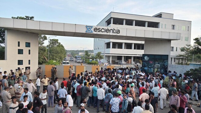 ریاست آندھرا پردیش کے ضلع اناکاپلی میں واقع ادویات بنانے والی فیکٹری میں بدھ کی دوپہر کو آگ بھڑک اٹھی۔