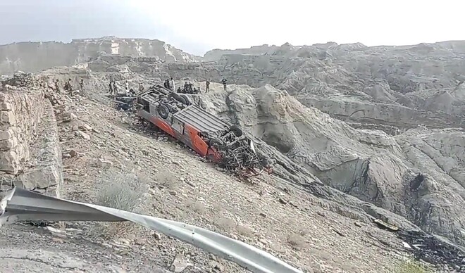 بلوچستان کے ضلع لسبیلہ میں بس کھائی میں گرنے سے کم سے کم 11 افراد ہلاک اور 33 زخمی ہو گئے۔