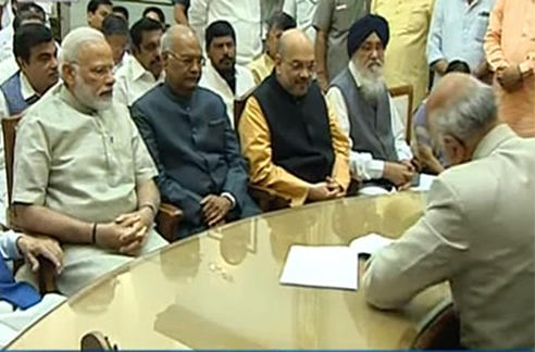 نئی دہلی۔۔۔۔این ڈی اے کے صدارتی امید وار رام ناتھ کووند نے جمعہ کو وزیر اعظم مودی ، بی جے پی کے صدر امیت شاہ اور اتحادیوں کی حکمرانی والی ریاستوں کے وزرائے اعلیٰ کی موجود گی میں کاغذات نامزدگی جمع کرادیئے ۔ بعد میں انہوں نے کہا کہ ایسے تمام لوگوں کا شکر گزار ہوں جنہوں نے میری حمایت کی۔میں اس عہدے کا وقار برقرار رکھنے کی حتمی کوششیں کرونگا۔ صحافیوں سے بات چیت کرتے ہوئے انہوں نے کہا کہ صدر کے عہدے کو پارٹی سیاست سے بلند رکھوں گا۔جب میں گورنر بنا تھا تب بھی میرا تعلق کسی پارٹی سے نہیں تھا۔کاغذات نامزدگی جمع کراتے وقت بی جے پی رہنما ایل کے اڈوانی، مرلی منوہر جوشی ، سشما سوراج اور وینکیا نائیڈو بھی موجود تھے۔ کووند نے اپنے کاغذات نامزدگی پارلیمنٹ ہاؤس میں جمع کرائے۔