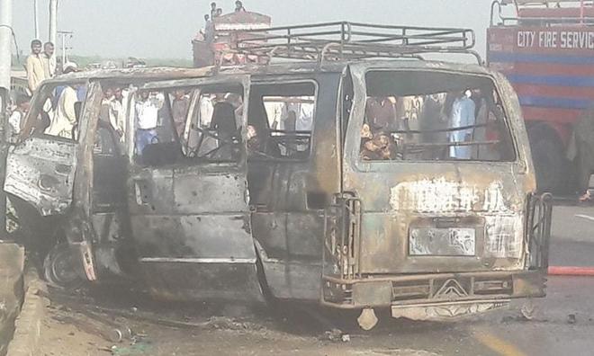 ملتان .... ہیڈ محمدوالا کے قریب اتوار کو لیہ سے ملتان آنے والی وین میں آگ لگنے سے 6 افراد ہلاک اور24 زخمی ہوگئے۔زخمیوں میں کئی کی حالت تشویشناک ہے۔اطلاعات کے مطابق آگ اس قدر شدید تھی کہ مسافر جھلس کر جل گئے۔ جائے حادثہ پر امدادی کارروائیاں شروع کردی گئیں۔ابتدائی تحقیقات کے مطابق ایل پی جی سیلنڈر پھٹنے سے وین میں آگ لگی۔ خواتین اور بچوں سمیت ایک خاندان کے 30 افراد سوار تھے۔ریسکیو ذرائع کے مطابق زخمیوں کو ملتان کے نشتر اسپتال منتقل کیا گیا ۔