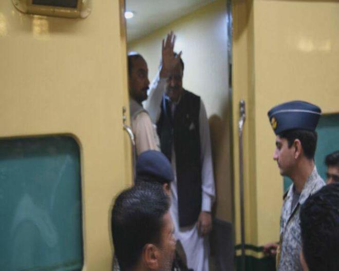 لاہور...صدر ممنون اپنے اہل خانہ کے ہمراہ بذریعہ ٹرین لاہور سے راولپنڈی کےلئے روانہ ہوئے۔ صدر مملکت اور ان کے اہل خانہ نے 103اپ سبک رفتار ٹرین کے ساتھ لگائے گئے مخصوص سیلون میں سفر کیا ۔ ریلوے اسٹیشن پر سیکیورٹی کے انتہائی سخت انتظامات دیکھنے میں آئے ۔داخلی راستے کو عام مسافروں کےلئے مکمل طور پر بند کر کے متبادل عقبی راستے سے ریلوے اسٹیشن کی اندرونی حصے تک رسائی دی گئی ۔ ریلوے اسٹیشن کی حدود میں پارکنگ کو ممنوعہ قرار دیا گیا ۔ اہل خانہ سخت سکیورٹی حصار میں ریلوے اسٹیشن پہنچے جس کے بعد صدر ممنون سیکیورٹی میں ریلوے اسٹیشن آئے۔