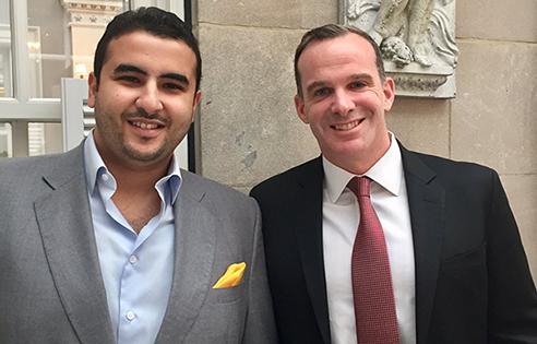 واشنگٹن ۔۔۔۔امریکہ میں نئے سفیر کی حیثیت سے چارج لینے پر شہزادہ خالد بن سلمان کی زبردست پذیرائی کی گئی۔ امریکی عہدیداروں نے واشنگٹن پہنچنے پر سعودی عرب کے نئے سفیر کا پرجوش خیر مقدم کیا۔ داعش کے خلاف عالمی اتحاد کیلئے امریکی صدر کے خصوصی ایلچی نے نئے سعودی سفیر کے ساتھ تصویر ٹویٹر کے اکاؤنٹ پر جاری کرتے ہوئے کہا کہ میں واشنگٹن میں مملکت کے نئے سفیر شہزادہ خالد بن سلمان کا پر تپاک خیر مقدم کرتا ہوں۔ ہم داعش کو تباہ کرنے کیلئے عالمی اتحاد کے قیام میں مملکت کے احسان مند ہیں۔