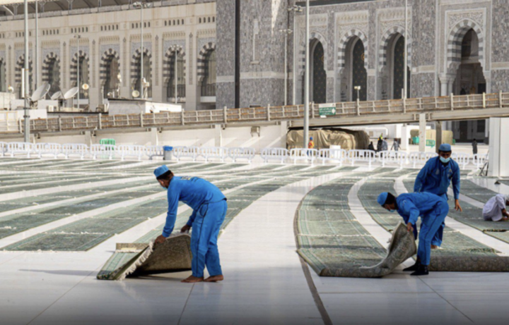 مسجد الحرام میں رمضان کےلیے 25 ہزار نئے قالین بچھائے گئے