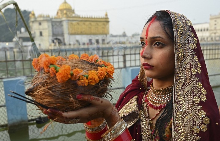 دریائے جمنا پر چھٹھ پوجا کے تہوار کی رسومات
